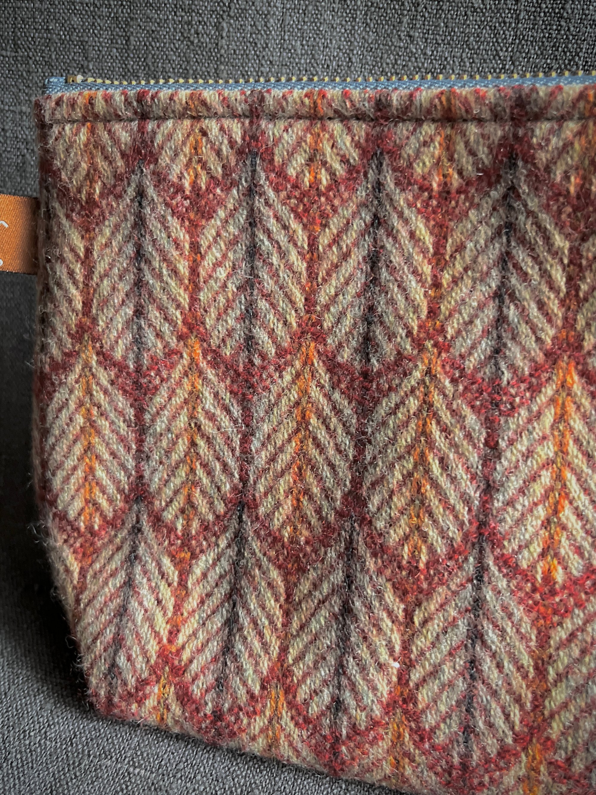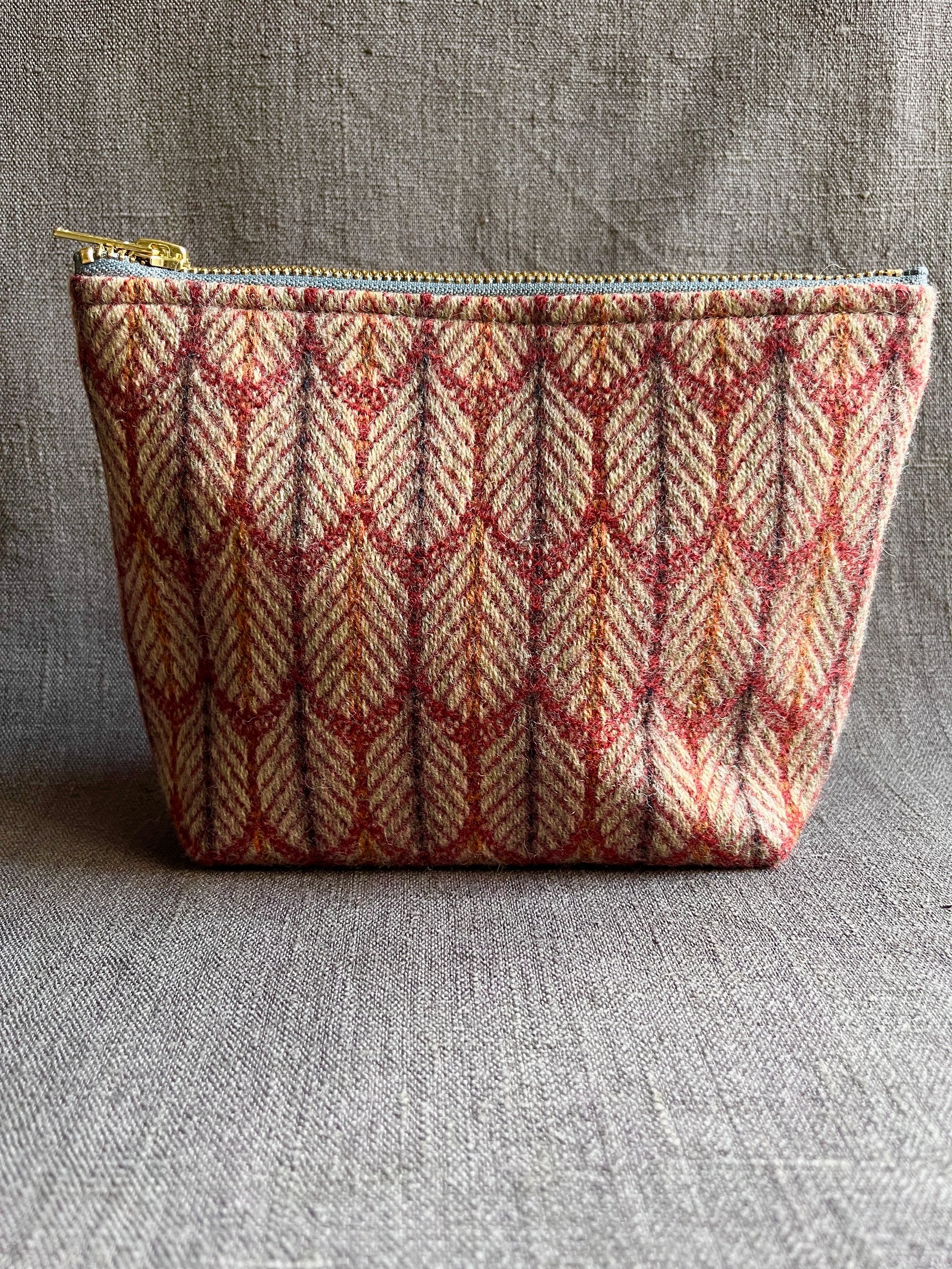 Grey poly/cotton lining. Brass zip.