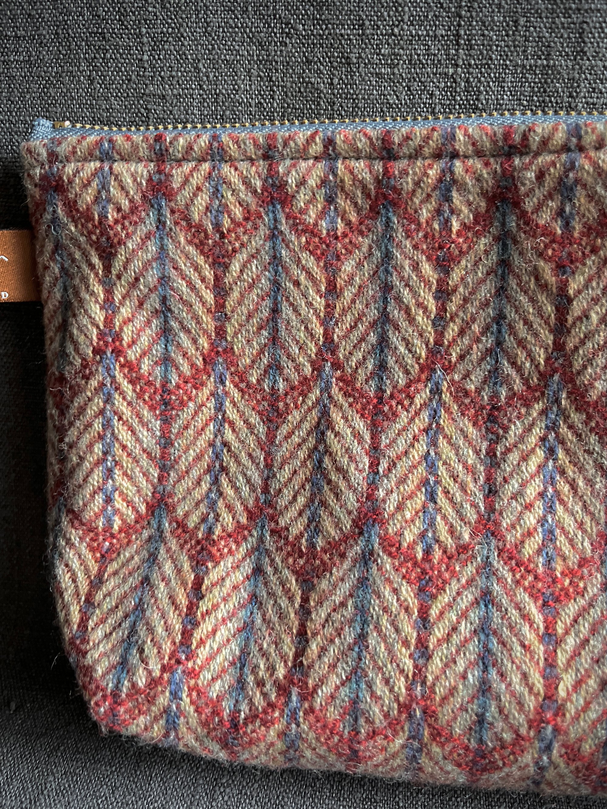 Grey poly/cotton lining. Brass zip.